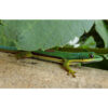 Megjelenés: Ez a gyík a legkisebb nappali gekkók közé tartozik. A maximális hossza elérheti a körülbelül 11 cm-t. A test színe élénkzöld, a farka élénk kék lehet. Az orrán piros „V” alakú csík, a szemek között pedig piros sáv található. A hátán gyakran számos apró téglavörös pont található. Tipikus jegy a nyakrész türkizkék foltja, amelyet egy kis piros csík szegélyezhet. A szem körül sárga gyűrű van, a hasi oldal sárgás.